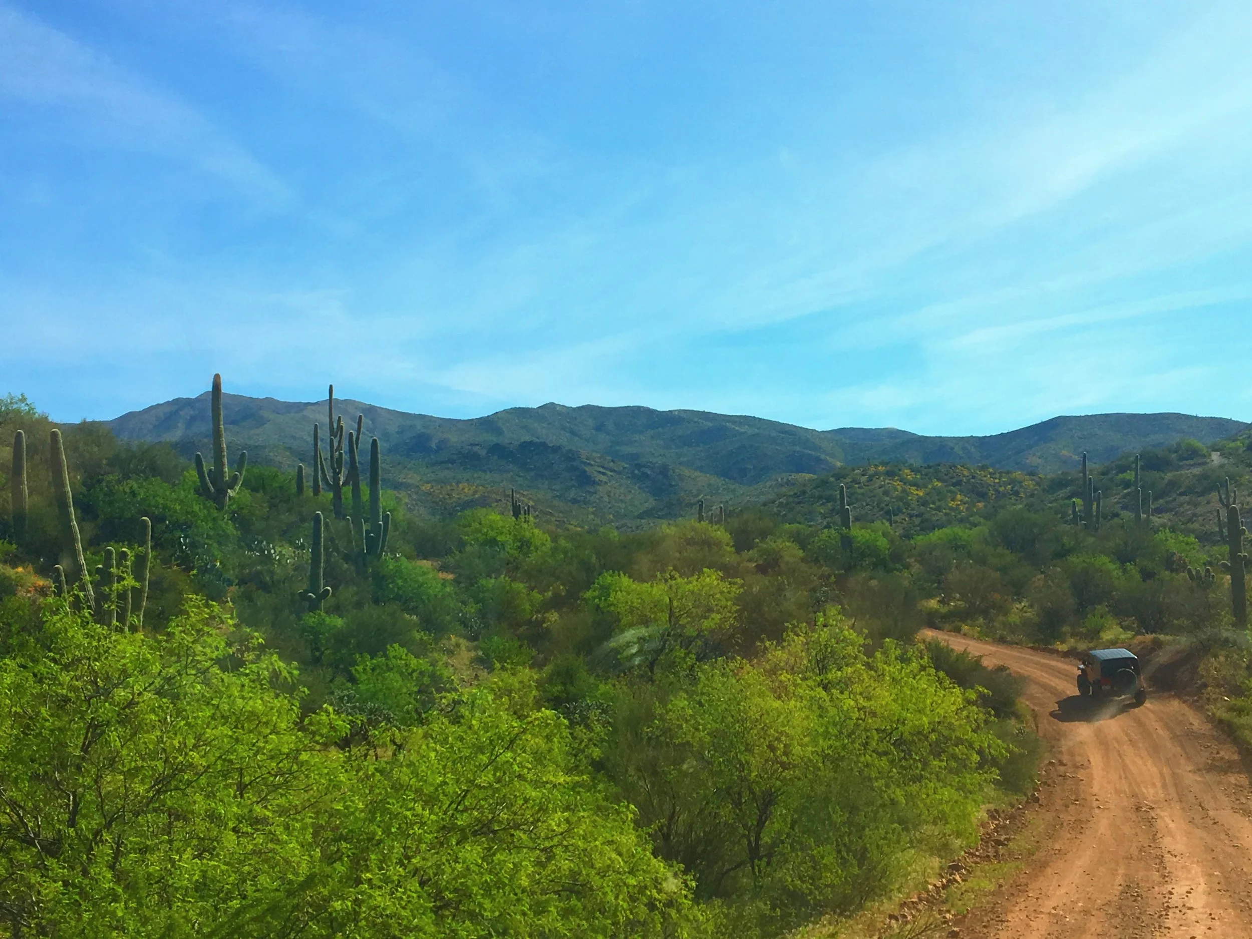 Now this is what I call a Sunday drive. If you want to feel like you’re in the middle of the Wild West, steep inclines and cliffs included, this is a drive for you. We left the ranch with the Jeeps and headed east to the Montana Mountain Loop Trail located near Superior and Queen Creek, about 2 hours from Phoenix.